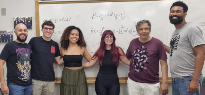 Leonan Perá, os estudantes da Unesp Marco, Bárbara e Maria Eduarda e os professores Elso Drigo (Unesp) e Josimar Fernando (IFSP) [imagem: arquivo pessoal]