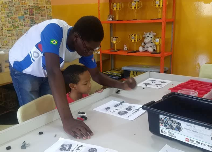 Emanuel Lemes atuando, em 2018, como monitor no Lar Frei Arnaldo de Votuporanga pelo Projeto de Extensão "Clube da Robótica" [Fotografia: Arquivo pessoal]