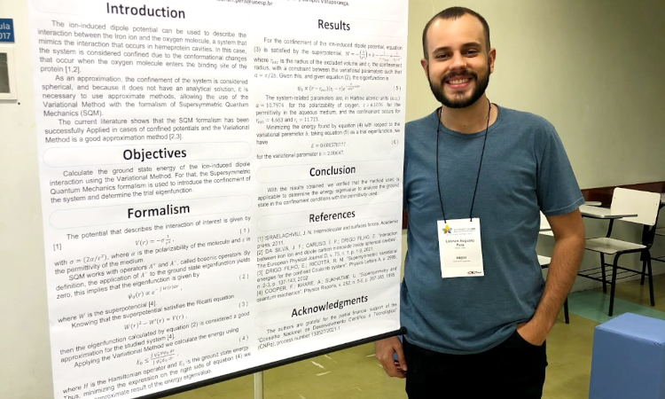 O projeto de pesquisa de Leonan tem como título “Efeitos do confinamento nos estados excitados dos potenciais de Morse e Lennard-Jones pelo formalismo da Mecânica Quântica Supersimétrica”. Os resultados de seus estudos em andamento podem contribuir com o desenvolvimento de pesquisas da indústria farmacêutica e em biotecnologia.